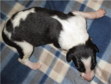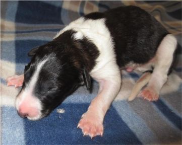 Neweßta , noch naß von der von der Geburt, doch wenn sie sich etwas erholt hat, kommt die "Reinigungskolonne"! Keiner soll glauben, Neweßta liege mit ihren Kindern auf einer dünnen Matte auf kalten Fliesen! Nein, im Gegenteil: Eine konfortable Bodenheizung regelt in den verschiedenen Liegezonen die Temperatur, so daß für Mutter und individuell für die Welpen angenehme Liegetemperaturen herrschen. Kaum, wenn nicht gar kein anderer Kennel bietet seinen Hunden diesen Luxus. Man kann es mit einer warmen Kachelofenbank vergleichen und es trocknet die Haut der Welpen nicht aus, wie bei einer Wärmelampe. Zudem sind diese Hundplätze sehr gut hygienisch sauber zu halten.