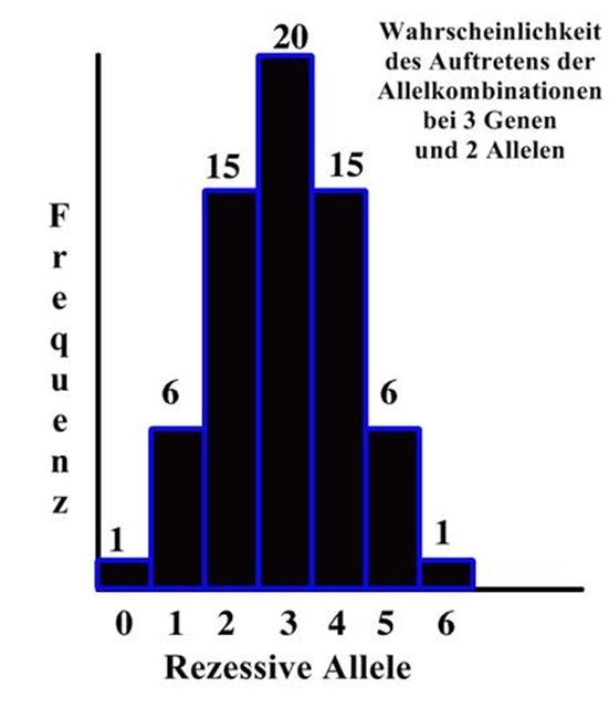 der 6 rezessiven Gene abbekommen hat und daher krank wird.