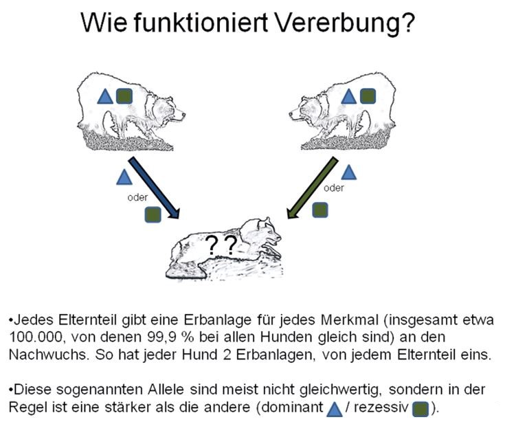 rezessiven und 2 dominanten Genen und schlussendlich ein einziger Hund,