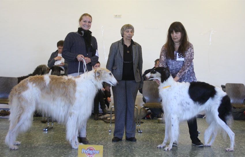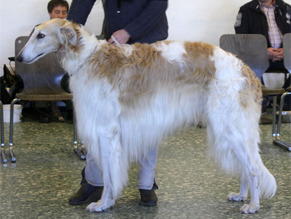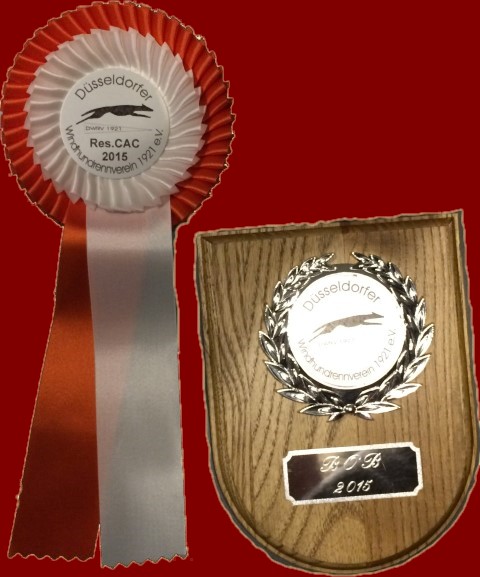 08.03.2015 Richterin: Frau G. Schröter, D Amethyst Arkadij: VV2 in der Jüngstenklasse, Opal: Zwischenklasse : V2, Res-CAC, Res-VDH, Niemen: Champion-Klasse: V1, VDH, BR, BOB ( und in der Auswahl der besten 4 fürs BIS ) Das Tribünenhaus der Trabrennbahn Dinkslaken ist der Veranstaltungraum für die CAC-Ausstellung des Düsseldorfer Rennvereins.