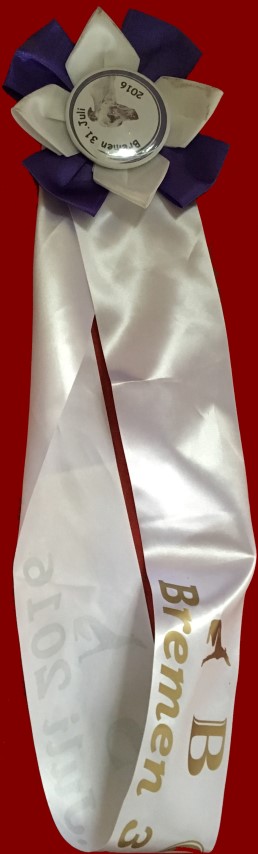 Bremen, 30.07.2016 Richterin: Carolin van Zanten, Nl Pauli: Zwischenklasse: SG 1, Amethyst: Offene Klasse: SG 2, High: Veteranenklasse: Platz 2, Res-VDH & CAC ![]() ![]() ![]() Bremen, 31.07.2016 Richter: Louis Dehaes, BE Pauli: Zwischenklasse: V1, VDH, Res.-CAC => CAC Amethyst: Offene Klasse: V1, VDH, CAC, BR, BOS, High: Veteranenklasse: Platz 2, Res-VDH & CAC ![]() ![]() Amethyst und Paul, ein zufriedenes Frauchen und ein lächelnder Richter! ![]() High |