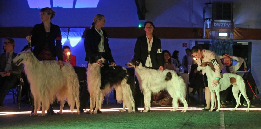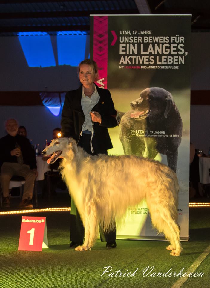 Kirchheim, 06.01.2018 ![]() Richterteam: Frau W. Schwerm-Hahne/D, Frau L. Mach/ S, Frau M. Marpe/D ( von links nach rechts ) ![]() Amethyst und Opal: gemeldet und qualifiziert in den Katekorien: S, S&L, C. ![]() ![]() ![]() In der Vorausscheidung S und S&L war Amethyst auf Platz 1, Opal jeweils auf Platz 2 der Rasse! In der Kategorie Coursing waren wir neben Ava die einzigen Barsois, doch da wir erst sehr kurz im Sport tätig sind, weil wir ja auch auf den Ausstellungen vertreten sind, haben wir nicht so viele Titel wie andere Hunde, die ausschließlich Coursing machen. Das ist auch o.K., aber: Wir sind dabei! ![]() ![]() ![]() Im Finale stand dann Amethyst für S&L, S und errang den Titel für S&L! Zuchtziel erreicht! Beide Rüden in 3 Kategorien qualifiziert zu haben, war allein ein super Ergebnis!!!!!! |