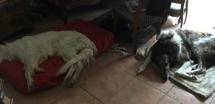 Das Leben im Haus in Soest: Das Haus habe ich in 1999 selbst entworfen und in 2000 bin ich eingezogen. Ich habe meinen Mann kennengelernt und so sind wir 2001 nach Großenkneten gezogen. Doch ab Oktober 2016 wohnen wir wieder in Soest...... Die "Hausordnung" jedoch bleibt immer die gleiche! Unsere Barsois leben mit uns zusammen. Wir nennen sie daher auch gerne "unsere haarigen Familienmitglieder". Und somit haben sie auch "Rechte und Pflichten" Sie haben z. B. das Recht, sich im ganzen Haus, außer unserem Schlafzimmer und Ankleidezimmer, aufhalten zu dürfen, wann immer sie wollen, draußen oder drinnen zu sein. Zu ihren wenigen Pflichten gehört: Besucher zu melden und Einbrecher abzuschrecken. Und wie es sich für einen richtigen Barsoi gehört, kommen sie den auch nicht nach. Und es gibt Regeln, an die sich alle halten müssen: Im Haus wird nicht gepupt, es werden keine Möbel angefressen, nicht markiert und auch nicht gestritten! So ist ein harmonisches Miteinander gewährleistet.