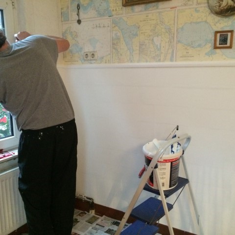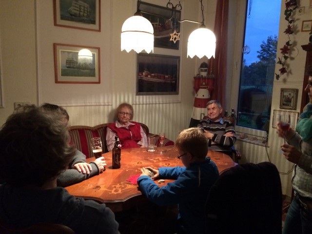 21.12.2014: Es ist zwar Sonntag, doch ein wenig Arbeit muß dennoch gemacht werden! Im Wohnzimmer wird Deckenlicht gelegt - hinten, am Esszimmertisch und vorne, wo sonst die alte Petroliumlampe hing. Nach ca 11 Jahren endlich Licht - von oben!!! Dank der Funktechnik! Und alle sind rechtschaffen müde! Auch der Kurzschluß, den wir seit dem 13. 12. hatten, wurde gefunden, Gott sei Dank, Weihnachten kann kommen!