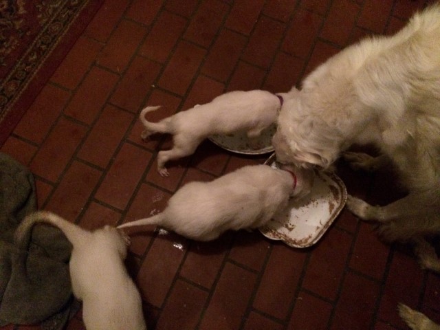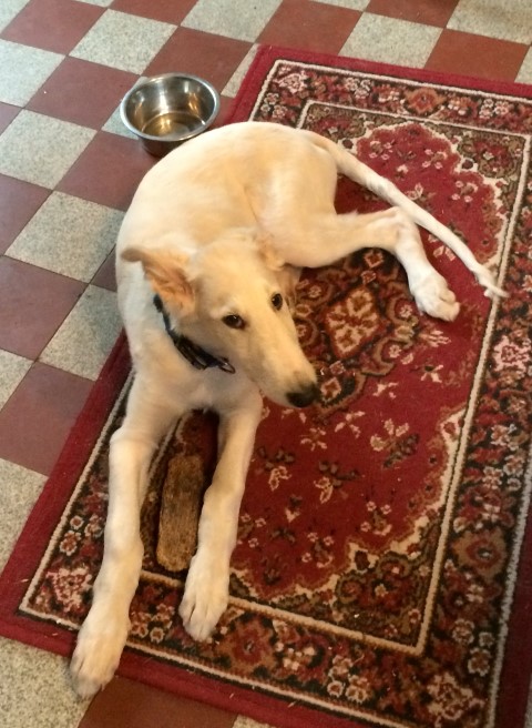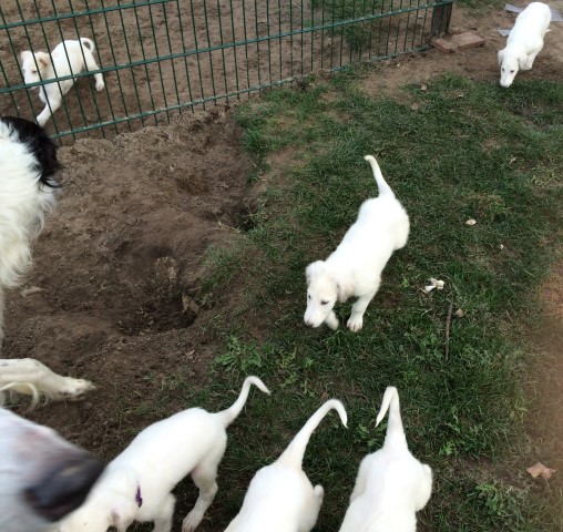 05.12.2014: Der arme Opal hat es mit dieser Rasselbande wirklich nicht leicht! Er ist der einzige, der sich riesig um sie kümmert! High und die anderen gehen ihnen inzwischen lieber schnell aus dem Weg! Aber Opal liebt sie über alles!!! Noch sind es 5, die er beaufsichtigt, morgen werden wieder einige abgeholt! Leider mußte ein neues Hundefrauchen - krankheitsbedingt - ihren süßen Welpen wieder zurückgeben. So ist noch ein weißer Rüde zu haben. Wir hoffen sehr, dass auch er ein schönes neues Zuhause findet. Inzwischen weiß ich aber, dass Milow sich sehr gut mit seinen 2 Katzen versteht! 01.12.2014: Neue Bilder von Aron, der jetzt Milow gerufen wird: ![]() ![]() ![]() Milow hat ein großes bett, einen großen Garten und hat unterschiedliche Spielgefährten: Hunde und Katzen. Frauchen, Herrchen und die Hunde freuen sich, dass er da ist, ob die Katzen es auch tun, weiß ich nicht...