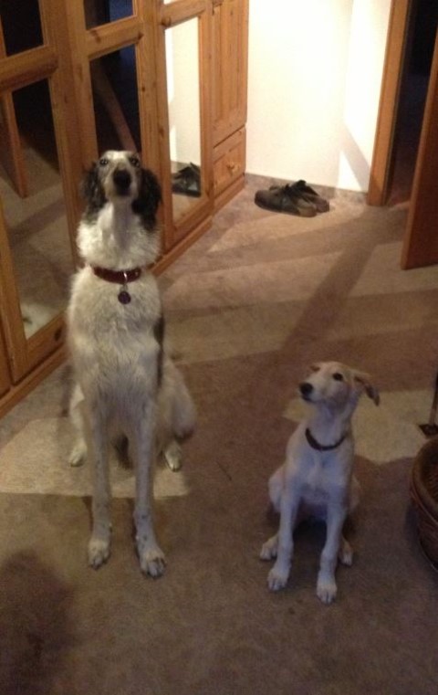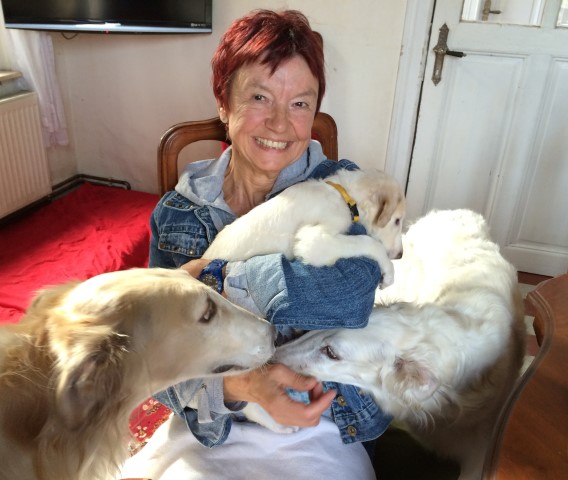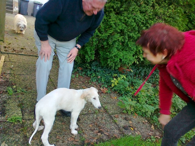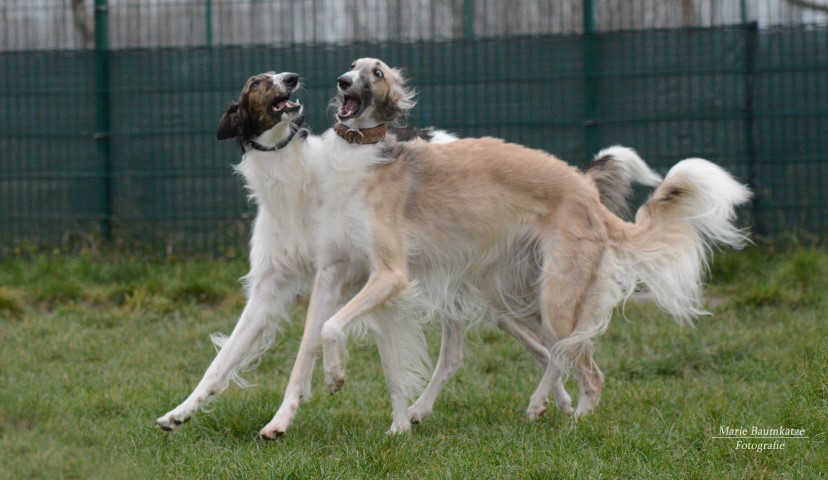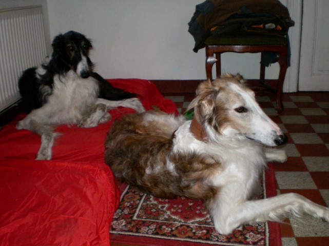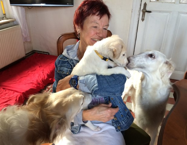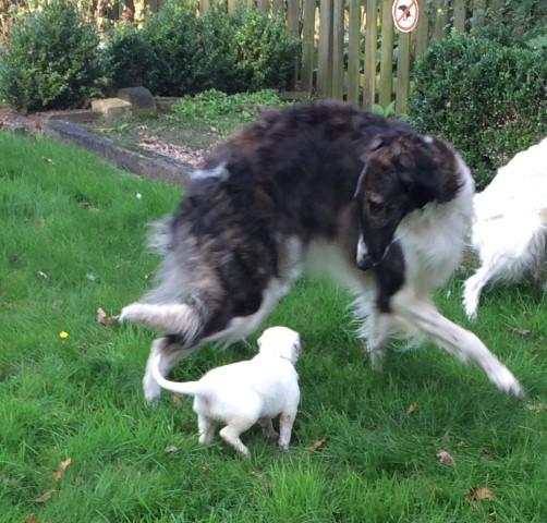 30.11.2014: Asja und Lea Raschi-Pack-Buran verstehen sich sehr gut. Asja lernt sehr viel von ihr, war sehr schnell "stubenrein", kann "sitz" und "pipi" auf Abruf und hört super. 01.12.2014: Neue Bilder von Oblonka aus Berlin: 29. - 30.11.2014: Barsoi-Meeting in Alsfeld! Darauf haben wir uns schon sehr gefreut: Sich austauschen und miteinander in unbeschwerter Atmosphäre schwetzen! Doch bis wir erst einmal angekommen waren ....! Unser Navi schickte uns in einer "Schleife" zum Ziel! Und dabei war es sowieso schon sehr weit! Doch wir hatten 2 schöne, interessante Tage und freuen uns schon auf das nächste meeting in 2 Jahren.