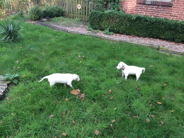 28.10.2014: Zwei Ereignisse haben den heutigen Tag bestimmt: Meine liebe Mutter mußte plötzlich ins Krankenhaus, was natürlich nicht schön ist und meinen Tagesablauf völlig veränderte, und am Abend ein interessantes Züchterseminar von Mars. Im ersten Vortrag ging es um Trennungsschmerz - wie lernt mein Hund, auch einmal alleine zu bleiben und im zweiten Vortrag ging es um Epilepsie bei Hunden, auch höchst interessant! 22.10.2014: Am 30.10. werden unsere Welpen gechipt und geimpft! Die ersten verlassen uns dann schon am 08. November! Und dann geht es "Schlag auf Schlag". Nur Aquamarin bleibt bei uns und wir hoffen, dass er sich auch so gut entwickelt wie Vater Niemen und Mutter High! Wir konnten uns ja lange nicht entscheiden, weil alle gleich schön sind, doch die Entscheidung wurde uns durch das Aussuchen der neuen Welpenfrauchen- und Herrchen abgenommen. Wir sind sehr froh darüber!