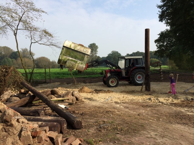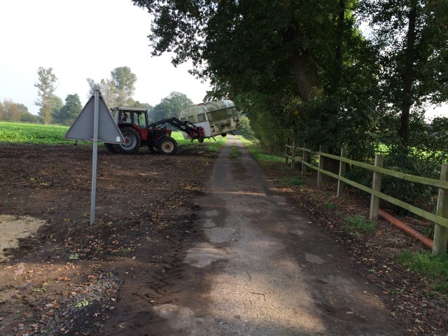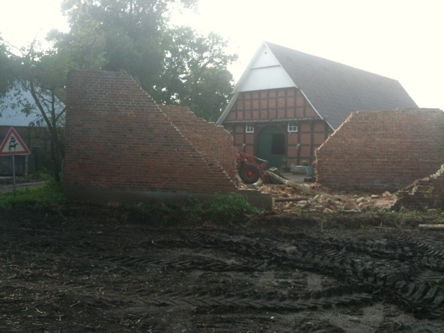 Ich will auf den Arm!!! Neun weiße Welpen hauen rein und sehen dann aus wie "Schwein"! Die "alte Scheune" verabschiedet sich! Der Abriß (die Dachziegel und Mauersteinen werden ein "neues" Haus schmücken), der Rest wandert zum Schrottplatz, die Ständer für das Carport ragen gen Himmel. Doch vorher ..... ....lernte unser alter Hundewohnwagen fliegen! 28.09.2014: Das "große Fressen"!
