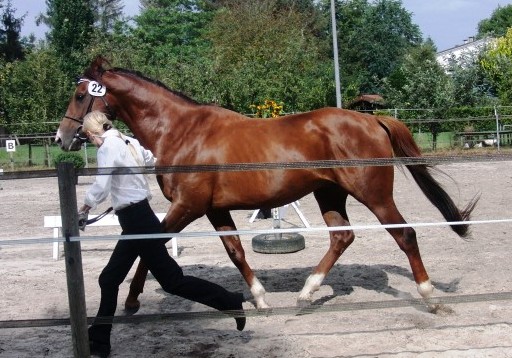 Man ist ja noch nicht ausgelastet genug! Wenn keine Hundeschau ist, dann muß man ja auf eine Pferdezuchtschau gehen! Ich mag mich selbst nicht fragen, wie blöde ich da bin! Statt die Füße hoch zu legen, ....! Und das ist der Unterschied: Auch, wenn der Paddock noch so gut abgezogen ist, wir laufen ( rasen!!! ) im tiefen Sand! Karin und ich hatten unsere beiden Hengste angemeldet ( ich wollte das gar nicht! ), und - wir sollten 2 Pferde eines Freundes vorstellen! Die wiederum gewannen alles und mußten in den Brilliantring und auch noch in den Championatsring! Also: Laufen, laufen, laufen! Und schwitzen,.... ! Nanu ja, unsere beiden Hengste haben jeweils ihre Rasseklasse gewonnen und somit waren wir schnell durch, aber die Stuten!!! Ich habe heute gelernt, sie zu hassen!!!! Laufen laufen, laufen! Ich weiß nicht, wie viele Pokale Georg - für den Karin und ich liefen - abgesahnt hat, er mußte mehrmals Kisten verstauen! - Doch wir waren sehr stolz, dass alles super gelaufen ist! Überhaupt war der Tag- abgesehen von dem Laufen - sehr schön!