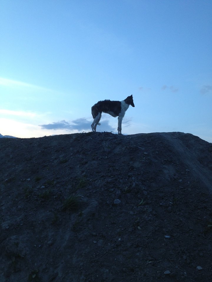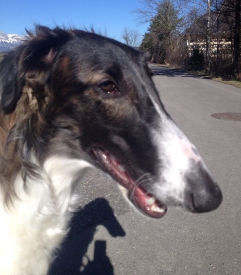 24.03.2014: neue Bilder von Otvaya aus Liechtenstein! Ein schönes Gesicht hat er! Und typisch Barsoi: in die Weite schauen ( wenn da die Berge nicht wären...... )!