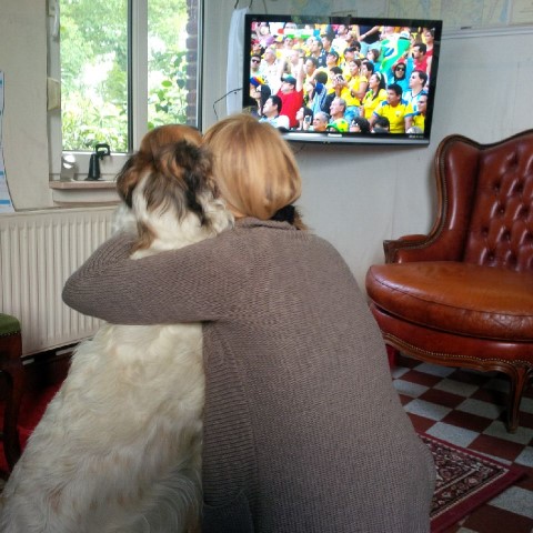 ![]() Wir fahren spazieren, welch schöne Köpfe! 21.06.2014: Heute war wieder ein spannender Tag: Ausstellung in Hannover-Garbsen! Es regnete auf der Hinfahrt, es regnete auf der Rückfahrt, es regnete in der Mittagspause!Leider konnte mir Christoph nicht helfen, da er parallel ausstellte! Ich war allein, Achim konnte nicht mit!Aber nicht einsam, denn viele liebe menschen waren da. Nachdem ich gesehen hatte, wer neben uns startete, war mir klar, dass es sehr schwer würde! Doch es lief super! Niemen machte V1, bester Rüde und Volia bekam ihr erstes CAC! Wenn Jürgen und Herbert nicht dagewesen wären, hätte ich es mit 4 Hunden nicht geschafft! Auch Gerlinde mußte einspringen. Ganz lieben Dank an alle! Odaloij bekam ein V2 und Olala stand auch wieder auf Platz 1! Für die beiden ist es der erste Schritt zur Ankörung. Zum Schluß machte Niemen noch das BOB! Ich war so glücklich, dass ich sogar spontan den Richter umarmt habe! Erst war er etwas irritiert, doch dann hat er sich mit mir mitgefreut! ![]() 15.06.2014: Auch uns hat das WM-Fieder erfasst. Tor/Wau für Ecua( wau )dor!!! Tor/Wau!!! Tor/Wau!!! Tor/Wau111.......