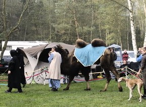 ![]() Es regnete, als wir losfuhren! Mit einigen "Unterbrechungen" kamen wir in Hildesheim an und der Regen ging. Viele liebe Bekannte, die wir lange nicht gesehen hatten, begrüßten uns dort. Endlich waren auch Christoph und Frank da! Wie so oft waren 4 Personen immer noch zu wenig für unsere 3 Barsois! Christoph und ich stellten fleißig die Hunde aus, er für mich und ich für ihn. Hier ein paar Eindrücke: