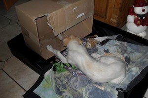 10.12.2014: Auch Macawi hat liebe Grüße geschickt. Ihm geht es sehr gut, er hat sich mit Takeshi angefreundet und genießt es, mit ihr zu kuscheln und über die Felder zu flitzen und auch, dass, wenn Frauchen ruft, er wieder umkehren muß! Macawi "wächst" jetzt die "Windhundhalsbandleiter" hinauf: erst Windspiel, jetzt Whippet..... .Es bereitet uns große Freude zu sehen, dass es allen "Kindern" gut geht. Macawi hat schon sein erstes Weihnachtsgeschenk ausgepackt und hat am "Auspacken" einen Riesenspaß. Noch ist Takeshi größer, noch!
