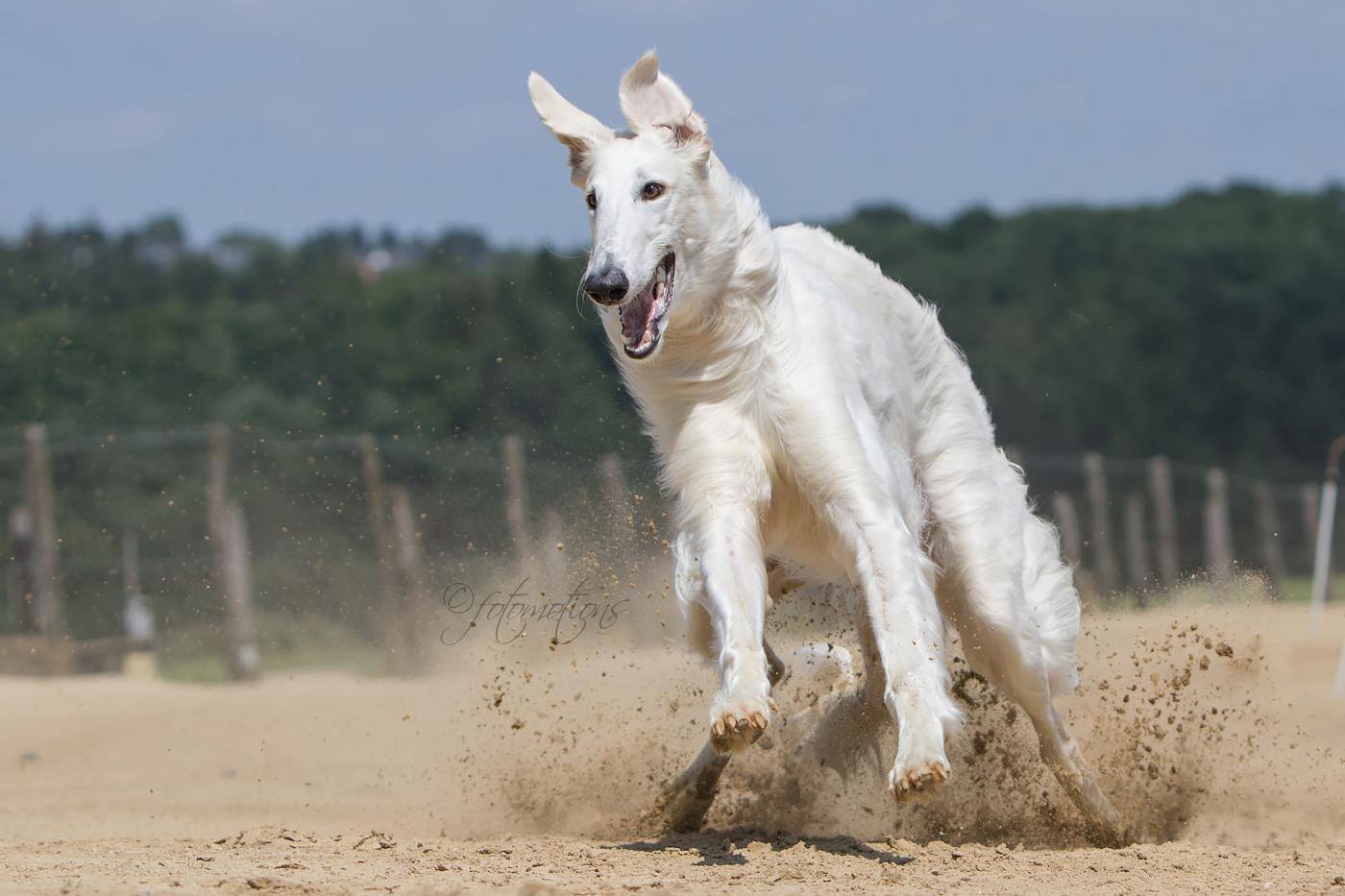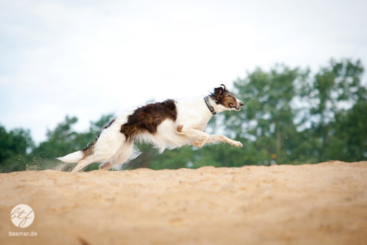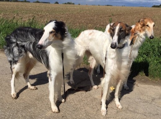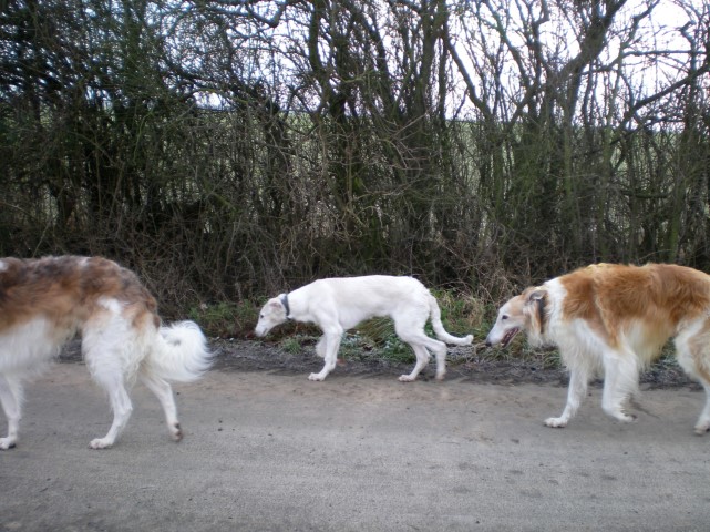 Aber auch Aquamarin mit seinen Freunden jagt über die Felder! Und dann im Barsoi-Gänsemarsch nach Hause!