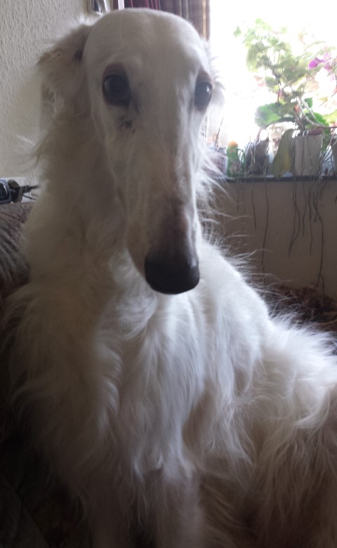 13.05.2015: Zu Besuch bei Ludger und Anne in Bühren: Eine süße, wunderschöne Barsoidame sucht noch ein liebevolles Zuhause: Panja! Schaut sie Euch an: Ma Cherie,wer kann dazu schon "nein" sagen! Ein Köpfchen, aber mit was für ein schönes!