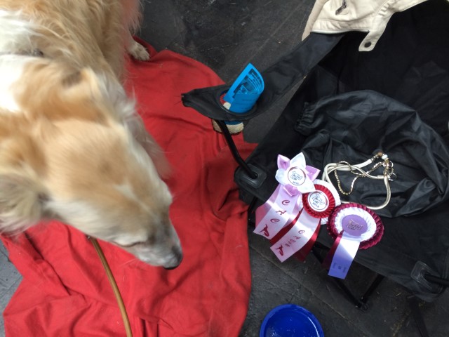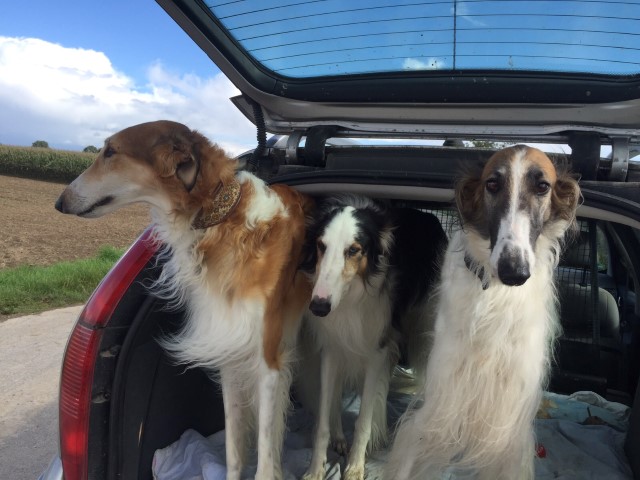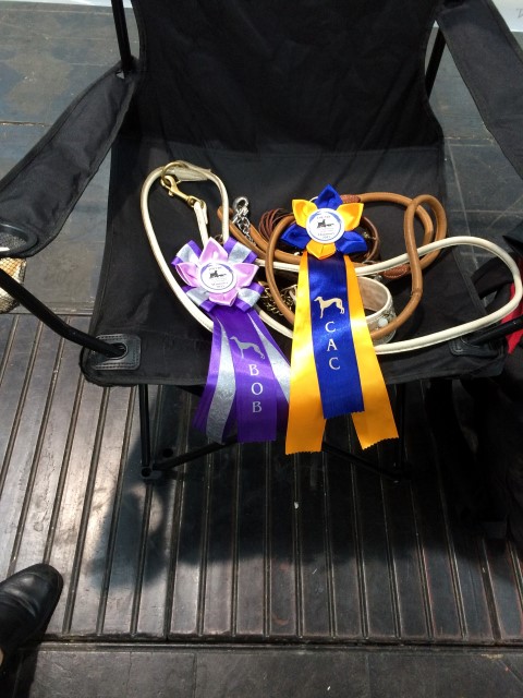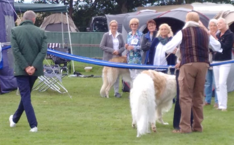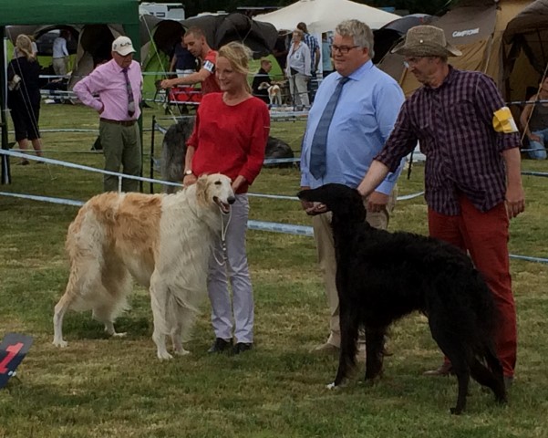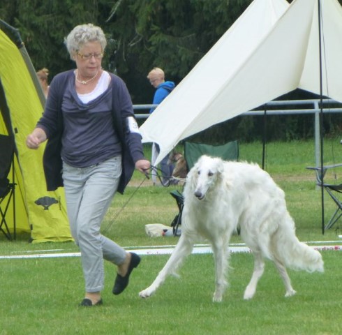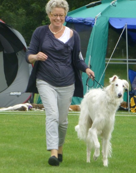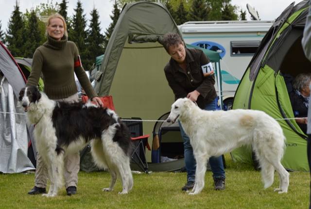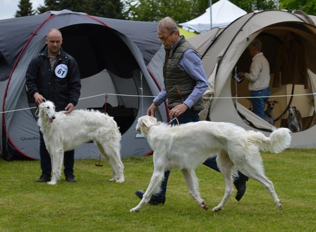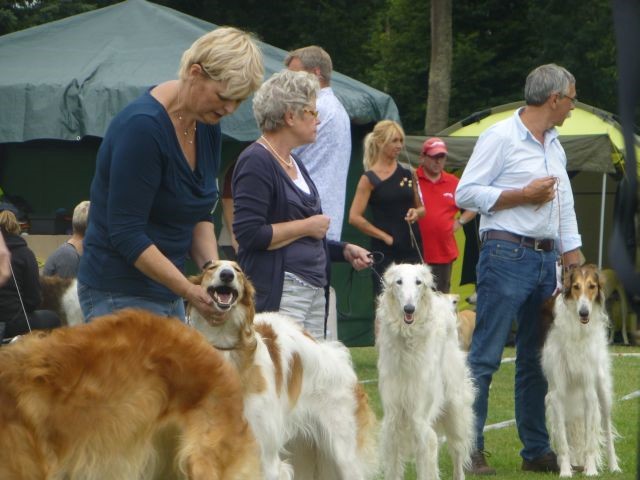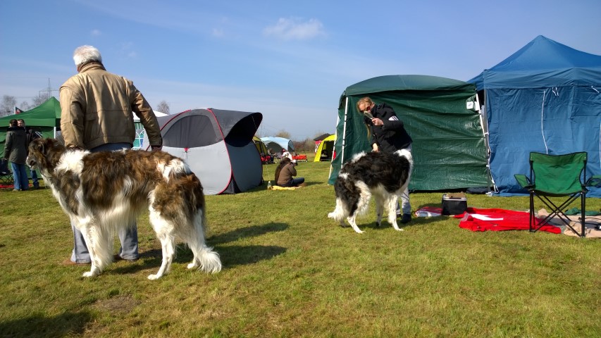 30.05.2015: Sehr früh starten wir nach Issum! Mit brauchten heute "nur" Opal und Niemen. Fokko fuhr mit mir, und ich war sehr froh über seine Gesellschaft! Als ob es so sein sollte, parkten wir alle nebeneinander! Das Wetter war Aprilwetter: Sonne, Regen, Sturm und Hagel wechselten sich ab und so kuschelten wir alle in 2 Zelten auf engstem Raum mit unseren Hunden! Kommunikation pur! Es war einfach ein wunderschöner Tag für uns alle. Und auch waren wir glücklich über unsere Ergebnisse! Achat hat das Jüngsten-BOB bekommen, Opal erreichte das 3. CAC aus der Zwischenklasse heraus und ist jetzt auch beim DWZRV-Championat in der Warteschleife, Niemen wurde 3.! Sandra und Chris freuten sich sehr über Achats Erfolg, und ich natürlich auch!! Ebenso war Claudia froh über ihren Erfolg und auch Christoph und Frank waren mit ihren Windspielen sehr gut ( sind sie immer ): BOB etc! Ich hatte schöne Gespräche mit Freunden, und als wir endlich gegen 21:00 h wieder zu Hause waren, waren die Hunde und ich "platt"! Aber, welch eine Begrüßung von den zu Hause gebliebenen!!!! Einfach toll, da geht mir das Herz auf! Katai vergaß sogar seinen momentanen "Auah-Fuß"!Ich liebe sie alle sehr! Im Gegensatz zu Christoph und Frank waren wir mit den Barsois durch und gönnten uns einen heißen Kaffee.