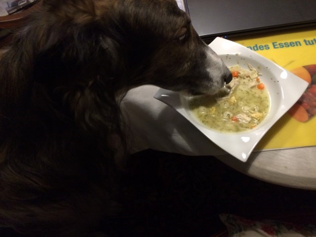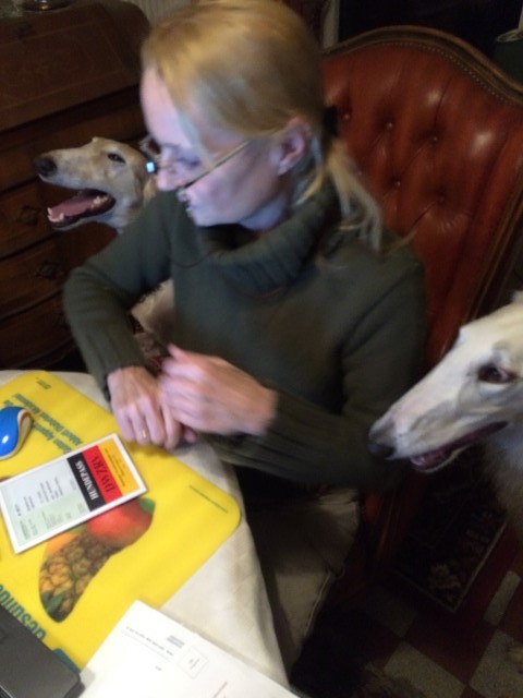 ![]() Karin wartete tapfer und freute sich sehr mit mir! 04.12.2015: Amethyst und ich duschten, und ich packte die Koffer. Um 18:00h kam Karin und wir fuhren nach Kassel. Ich war - wie immer - sehr aufgeregt. Im Hotel angekommen, in`s Appartement, auspacken und dann zum Thailänder zum Essen! Amy durfte auch mit! Für ihn bedeutete es: Das 1. Mal Fahrstuhl, Treppe, allein ohne die anderen Barsois und vieles andere mehr!!! Aber er absolvierte es, als hätte er nie etwas anderes gemacht! So ein lieber Hund! ![]() 01.12.2015: Es nieselt und stürmt! Aber Niemen und Nabat sind ehrgeizig und wollen mindestens 2 mal am Tag eine ausgibige Fahrradrunde drehen! Achim darf sich weder Schuhe noch Jacke anziehen, dann "nerven" sie ihn schon! ![]() ![]() November,der dunkle Monat ![]() 30.11.2015: ![]() 25.11.2015: "Gesundes Essen tut gut." So dachte wohl auch Beri: 3 Minuten nicht im Raum - aus der leckere Essenstraum! Er ist nun satt und ich muß hungern! dabei sollte er abspecken......! 23.11.2015: Unsere Pferde haben einen Zahnarzttermin: Frauchen, er hat aber gar nicht gebohrt ..... ! Toll fanden sie es nicht, doch das Fressen geht jetzt wieder besser! 22.11.2015: Der erste Schnee! Doch dann kam am Nachmittag doch noch die Sonne durch, und ich verabrede mich mit Anne zu einem Spaziergang mit Niemens Töchtern Panja und Pandora. Es hat uns allen Spaß gemacht! ![]() Abends zu Hause habe ich es mir dann bequem gemacht: Hunde rein, Füße hoch, Tatort an! 17.11.2015: Etwas Grundsätzliches: Ich liebe es, am Sonntag den "Tatort" zu sehen! Füße hoch und gut! Achim ist dann meistens im Wohnzimmer, auch schön, doch: Die Hunde!! Sie sollen zumindest einen Raum sauber halten!Deshalb ist es ein "geflügeites Wort" dafür, einigermaßen früh am Abend zu Hause zu sein! Doch oft gelingt es mir nicht. Aber, wenn ich denn zu Hause bin, ist es für mich ein Frefel, um 20:15 h gestört zu werden, ich genieße dann meinen "Feierabendwhiskie" und bin froh, abschalten zu kömnnen! Doch liebe Freunde dürfen mich immer anrufen! Ich fand diese Nachricht von Isabel und habe mich sehr darüber gefreut, wieder eine "alte" Dame zu sehen: 16.11.2015: Wir sind glücklich, aber totmüde zu Hause angekommen! Für Opal ist in diesem Jahr die Ausstellungssaison zu Ende. Er hat sich toll geschlagen und ich bin sehr glücklich, dass er es geschafft hat, mit nur 2 Jahren und 3 Monaten Dt. Ch. zu werden. Ich konnte seine VDH-Anwartschaften sogar nur mit VDH-Ausstellungen einreichen und brauchte gar keine vom DWZRV. Die CACs, die er in seiner Wartezeit bekam, konnten wir ja weitergeben, doch für die VDHs gilt das ja leider nicht, aber jetzt! 15.11.2015: Alles wurde wieder ins Auto verstaut, Opal hatte sich schon auf der Hinfahrt als Hafensänger geoutet und seine Songs begleiteten uns auch wieder auf der Fahrt zur Halle. Ein neuer Tag - ein neues Glück! Und so war es auch: Die Windspielfraktion holte, wie fast immer, alle Preise, und Opal wurde Dt. Champion VDH, Augenweide wurde aus der Jugendklasse heraus "beste Hündin"!!!!! Sie setzte sich in der Jugendklasse durch, bekam auch das Jgd-BOB und im Stechen um die beste Hündin schlug sie sogar die Championklasse!!!! Was für ein Glück für Besitzerin und mich als Züchterin!!!! Im Stechen um das BOB wurde allerdings der reifere Rüde ausgewählt! Für uns alle war das ein Grund zum Feiern, Gewinner Walter lud uns alle ein, es war ein wunderschöner Abschluß eines tollen Wochenendes: Jeder von uns war glücklich und zufrieden, was wünscht man sich denn mehr? Ja, es gab noch etwas: Eine gute Heimfahrt! 14.11.2015: Die Ausstellung in Karlruhe ist auf Grund der Halle schon sehr schön. Unsere Windspielfraktion war überaus erfolgreich, die Barsoifraktion weniger. Opal konnte nicht am Stechen teilnehmen, weil der Ringwart uns "nicht finden" konnte! Dabei standen wir am Ring! Augenweide bekam ein V2, Renate war sehr zufrieden, ich weniger! Opal hatte so die Nase voll von dem Trubel, er wollte nur noch weg! Er war nicht einmal mehr für die "Rassevorstellung" zu haben! Doch die Zeit mit Freunden zu verbringen, war alles wert! Walter bekam mit seinem schönen Barsoi über die Zwischenklasse das erste "große" VDH, genau, wie im Jahr zuvor Opal. Abends waren wir in einem schönen, gemüdlichen Lokal essen, auch Opal bekam von der freundlichen Bedienung eine leckere Portion! 13.11.2015: Opal wurde gebadet und der Koffer wurde gepackt, die große Hundebox kam in den Shire und auf gings nach Soest. Von dort aus fuhren wir zu dritt in Frank und Inga`s Auto nach Karlsruhe. Viele Baustellen behinderten unsere Fahrt, dazu kamen Regen und Sturm, das verzögerte unsere Fahrt über eine Stunde. Doch getoppt wurde es von einer Vollsperrung der Autobahn, deren Rückstau uns 500 m vor unserer Abfahrt erwischte. Selbst über den "Standsteifen" kamen wir nicht weiter! Die Nacht wurde entsprechend kurz! 12.11.2015: Heute ging es den Linden an den Kragen! Jedes Jahr müssen sie in "Form" geschnitten werden. Eigentlich hätte das schon viel früher passieren sollen, denn sie verdunkelten das Wohnzimmer sehr. Landschaftsgärtner Christian hat geschnitten und ich habe geschreddert! Heute sind noch die Blätter dran, dann ist die Nordterasse wieder o.K. 08.11.2015: Der Fluch der Technik! Achim hat einen neuen PC, so weit - so gut. Doch nun ging es los: Mein Hintergrunbild war weg! Also wieder neu aufgespielt! Fluchen von Achim: Ich habe Deine Pferde!! Achim stellte wieder seinen PC auf häßliche, graue Wassertropfen um und zack, ich hatte ihn auch! So ging das immer wieder hin und her. Erst war das ja noch ganz lustig und ich konnte Achim gut ärgern, aber ich bekam ja auch promt die Retourkutsche in Form von "Regentropfen" und das ärgerte mich natürlich auch. mal sehen, wie das weitergeht.... 07./ 08.11.2015: