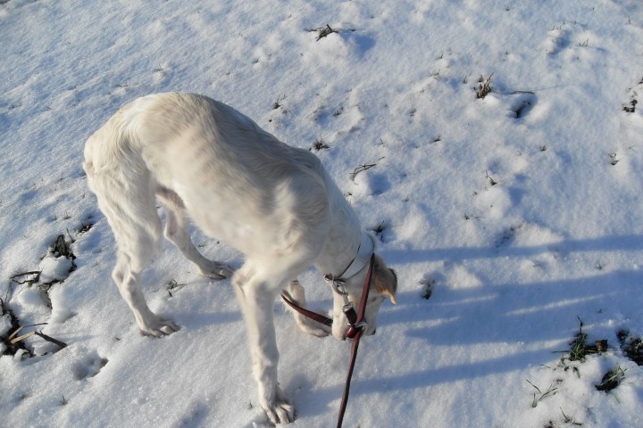 18.01.2015: Oblonka wie sie leibt und lebt: Über die Felder hetzen und sich dann von ihrer schönsten Seite zeigen, ja, das kann sie hier!
