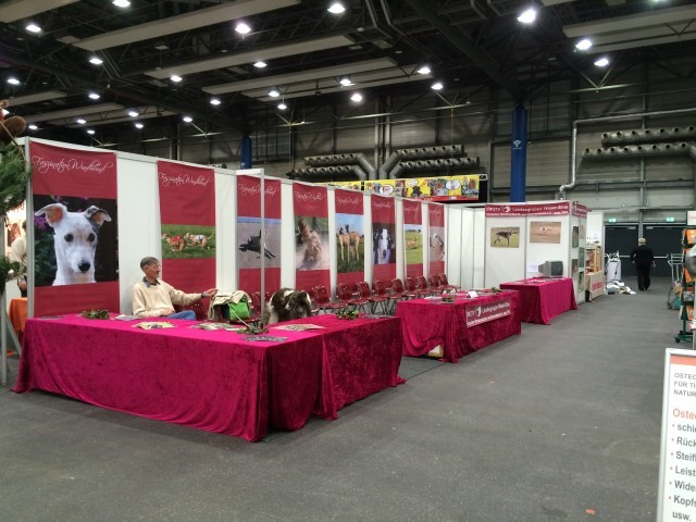 03.04.2015: Endlich in Hoope angekommen! Zu Hause hatte ich noch ordentlich mit Amethyst Streit, aber er mußte ihn beilegen. Wettermäßig hatten wir Glück. So war das alles ganz gut! Aber das Beste war, viele liebe Freunde wieder zu treffen! Und das war der Fall: Ich kann sie nicht alle aufzählen, aber alle Lieben waren da! Auch ausstellungsmäßig haben wir ganz gut abgeschnitten, doch wir waren dann auch alle froh - nach einem sehr langem Tag -, wieder zu Hause zu sein! Bei uns war es um 21:00 h!