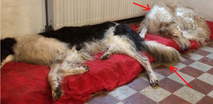 5 kleine, süße Welpen: 1/4. Der kleine Rüde ist oben links im Bild, eine süße Hündin ist Niemen-like, eine kleine Hündin hat auch einen schwarzen Mantel, eine schwarze Platten und die letzte scheint rot mit schwarzer Maske zu werden. Doch genau werden wir es erst in ein paar Tagen wissen. Ludger ist genau so stolz wie Bohdana auf diesen schön gezeichneten Wurf! Bohdana kümmert sich ganz rührend um ihre Kinder, die sich auf dem warmen Fußboden räkeln, denn diese Hundezimmer sind mit einer speziellen Fußbodenheizung ausgerüstet, die individuelle Wohlfühlzonen für die Mutterhündin und die Welpen zuläßt. So braucht man keine Wärmelampe, die ja nicht so gut für die Haut ist und auch keine Wärmeplatten, bei denen die Gefahr immer besteht, dass das Kabel, das sie benötigen, angekaut werden kann! ich vergesse immer, darauf hinzuweisen, um falsche Schlußfolgerungen zu vermeiden! Herzlichen Glückwunsch auch von unserer Seite!