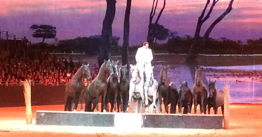 Es wurden immer mehr Pferde! Doch das Finale waren die 12 Schimmel, die nur über 2 Gerten geleitet wurden!!!! Gänsehaut pur