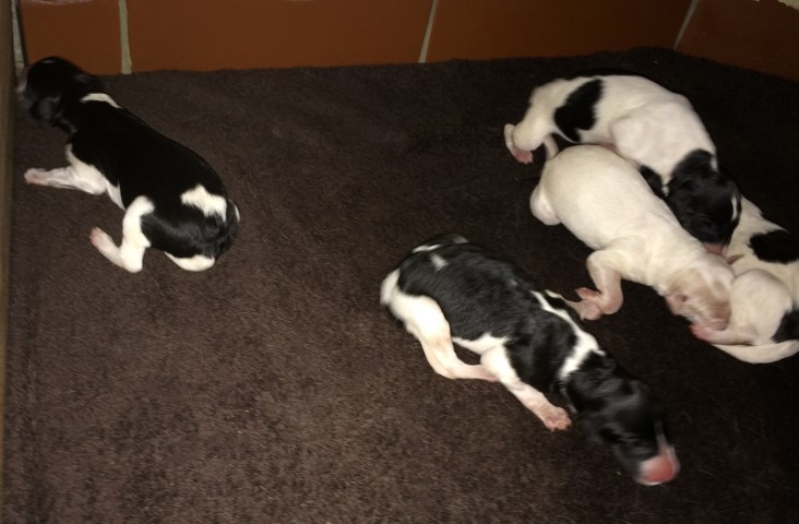 08.01.2015: Niemen ist zum 2. Mal Vater geworden: 5 kleine süße Mäuschen erblickten heut morgen auf dem Sofa in Ludger Bührmanns Wohnzimmer das Licht der Welt! Eigentlich sollen sie ja erst Übermorgen kommen, aber Mutter Bohdana fand, jetzt wird es Zeit! Und die Kleinen hatten es sehr eilig, die Welt zu begrüßen! Keine Komplikationen, eher heimlich, still und leise! Wir haben sie heute, an ihrem Geburtstag, dann in ihrem Welpenheim begrüßt: