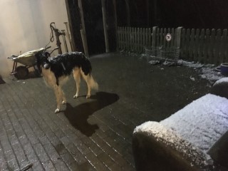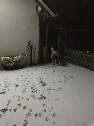Doch jetzt, 20 vor 22:00 h, fängt es doch tatsächlich noch an zu schneien! Die Barsois freut das, und weg!!!