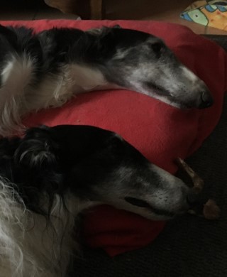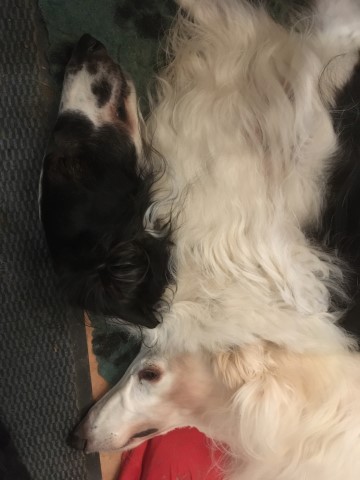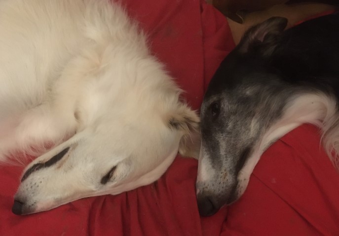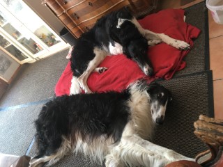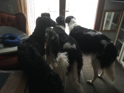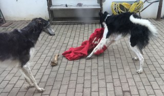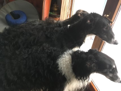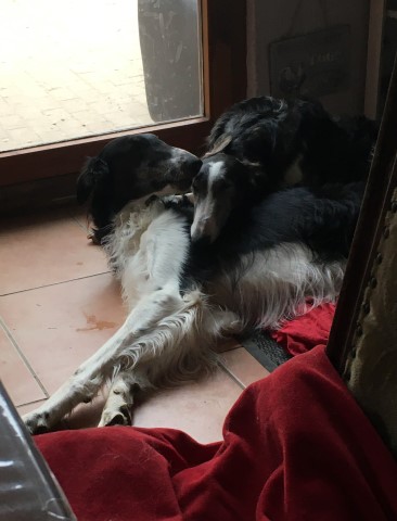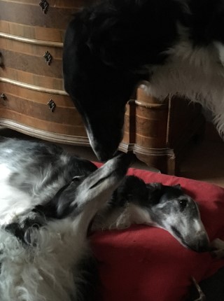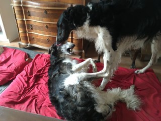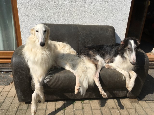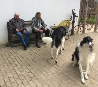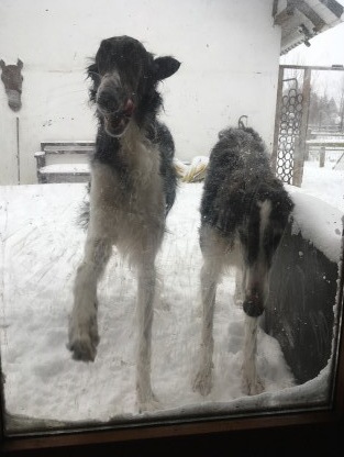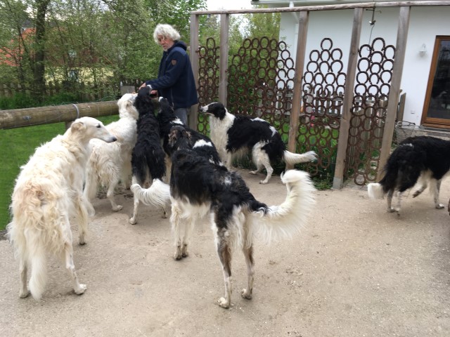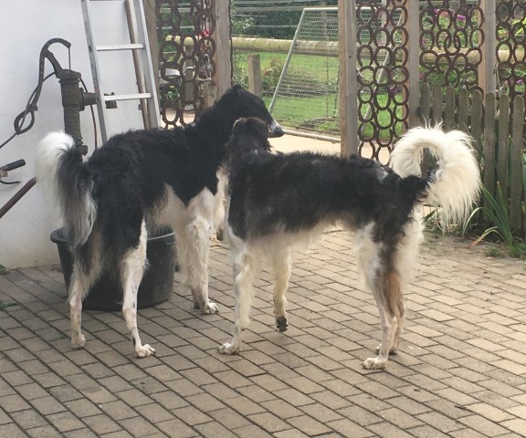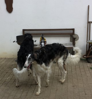 Und dann wollen die Barsois raus! Hier Brilliant und B-Knjas: 2 lange Nasen, eine länger als die andere!