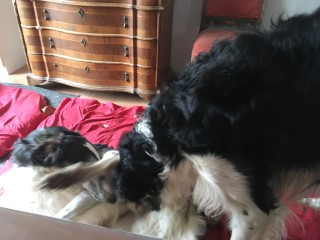 Die Fotos sind nicht gar aktuell, etwas mehr Schmuckhaar haben sie schon. Mit unseren "älteren" Semestern haben wir nichts großartig unternommen. Opal war kurz in der Veteranenklasse unterwegs, 2 Ausstellungen, 2 x V2, weil: Zu dick! Naja, ein bißchen zu dick, aber immerhin. Brilliant haarte völlig ab und verlor dadurch sein schönes, langes Schmuckhaar. Jetzt wächst es wieder wunderschön nach, und im neuen Jahr ist er dann auch wieder am Start. Auch Amethyst, Opal und Odaloij werden dann wieder ausgestellt, immer vorausgesetzt, es gibt auch genügend Ausstellungen, damit sie sich nicht gegenseitig im Wege stehen. Toller "Guten Morgen"!!! Der "Übeltäter" verläßt sein "Schlachtfeld"! Ist ja klar, wer das ist.