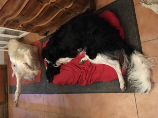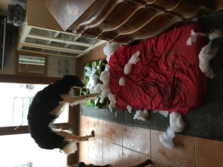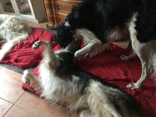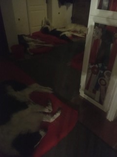 Hundebetten neu bezogen, Decken gewaschen, alles durchgeputzt, sauber! 10 Minuten später kamen die lieben 7 wieder rein...... ! Alles wieder auf Anfang!!! 04.01.2021: Morgens, nach dem ersten Pieselgang der lieben 7!