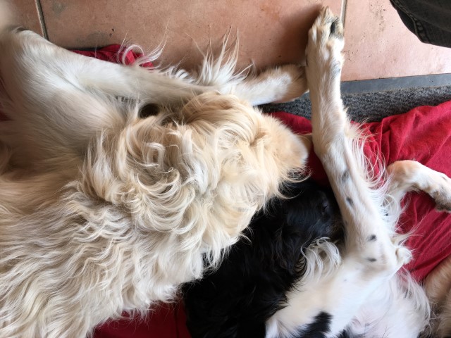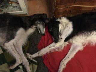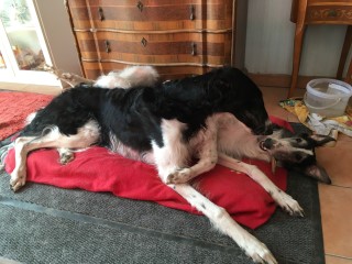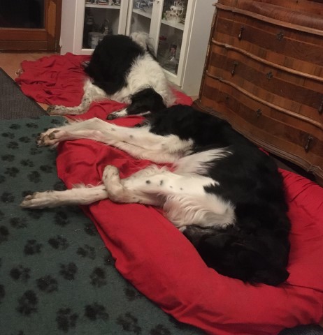 Unsere 2 "Schwarzen": Paul und sein Cousin Knjas! Und auch so kann man gut schlafen: Brilliant und Amethyst.