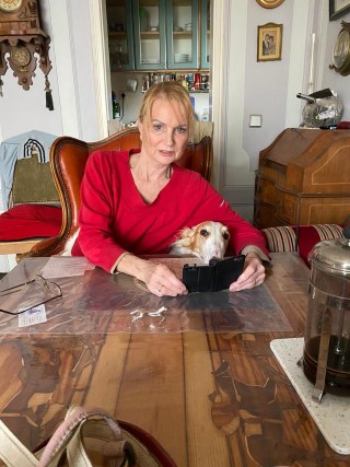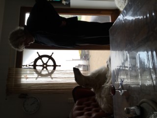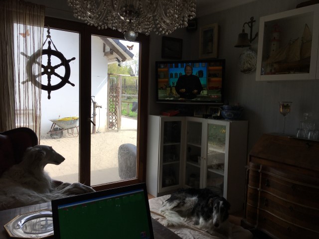 Achim hat inzwischen die Nase voll vom schlechten internet und hat den Router aus dem Büro nach unten verlegt. Huj, jetzt geht`s aber.... ! Und unsere Telefonfeststation ist auch dort angesiedelt, das ist für mich gut. Die "bösen, zerstörerischen" Barsois kommen da NICHT dran, das ist wichtig.