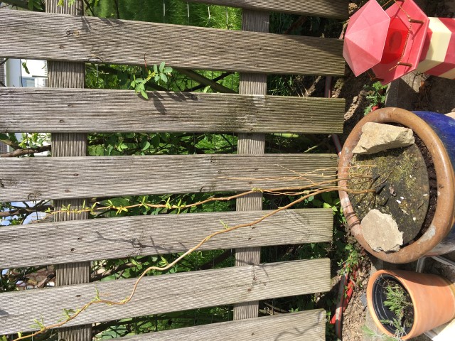 Und noch ein letzter kleiner Gruß aus der Natur, eine blühende Klematis! Und ausnahmsweise ein leeres "Makawibett", weil - außer Opal - alle draußen sind! Trotz des Wetters. Und wie ich ahne schon, was da an putzen wieder auf mich zukommt!!!