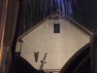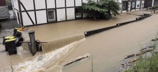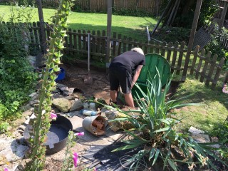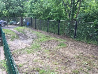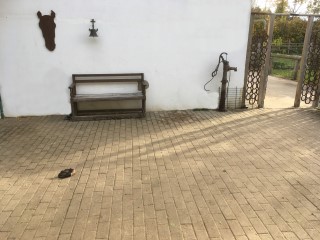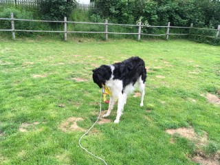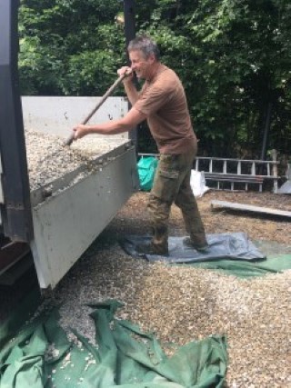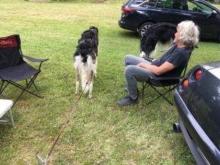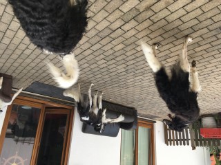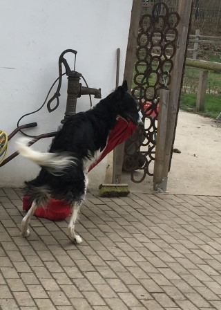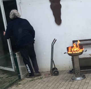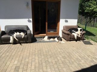 20.01.2021: Achim säubert die Hundematten mit dem Hochdruckreiniger, und die dunkle Familie schaut interessiert zu!
