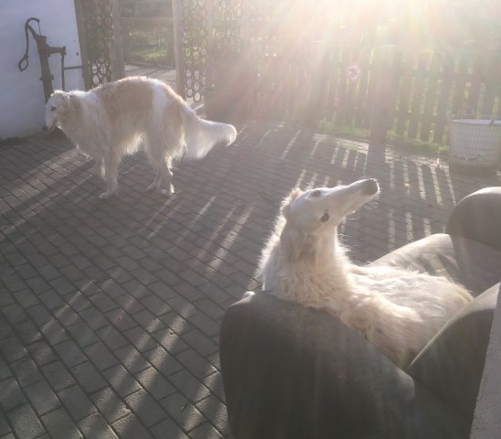 24.12.2021: Heute hatten wir Besuch von einem Ausstellungsfreund und Freundin, und unsere Jungs Besuch von Golubka. Sie ist eine schöne Maus und hat alle sichtlich beeindruckt! Alle waren hin und weg! Doch unsere Jungs sind richtig gute Kavaliere, immer schön zurückhaltend, ich bin sehr stolz auf meine Lieben! Es war ein schöner Nachmittag, wir haben viel erzählt und viel gelacht! Und auch unsere Barsois hatten viel Spaß, sie haben gespielt und sind gerannt wie der Teufel! Golubka ist verdammt schnell! Das war richtig Klasse für die Kondition! 23.12.2021: Wir waren beim Tierarzt und haben Brilliant auf Herz und Drüsen untersuchen lassen. Einen besonderen Grund gibt es dazu nicht, doch immerhin gehört es sich für einen gekörten Rüden so. Einige Ergebnisse haben wir gleich bekommen, einige werden uns später mitgeteilt. Natürlich gehen wir davon aus, daß alles in Ordnung ist, doch trotzdem bleibt immer ein aufgeregtes Gefühl. 22.12.2021: Heute früh fuhr Achim in unsere kalte Heimat, Vater und Verwandte besuchen, ich hüte Haus und Hunde! Wunderschön, dieser Wintermorgen, nachdem wir 3 Tage lang nur von Nebel umgeben waren.