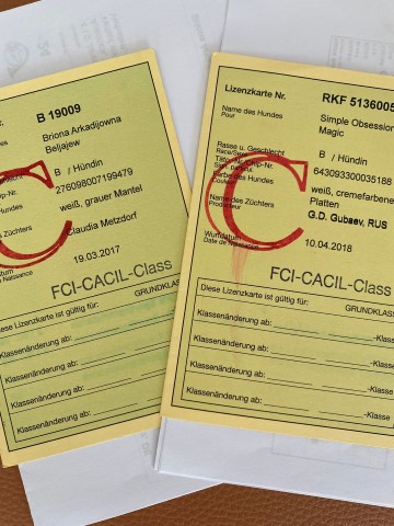 10.12.2021: Beryll`s Lizenzkarte ist da! Ich freue mich sehr, auch - wie bei Amethyst, Brilliant und Knjas- FCI-CACIL-Lizenz!