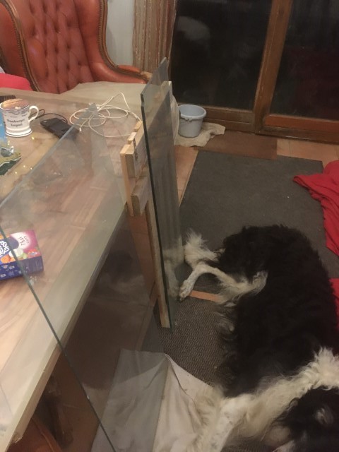 18.12.2021: Das Chaos zog ein! Alles ist ausgeräumt! Das Wohnzimmer steht voll, die Küche steht voll, die Nase ist voll, die Lufthansaküche ist leer! Leer? Nein, voll Werkzeug etc! Da Achim die verputzten Wände und das Holz schleifen mußte, haben wir Staub! Staub ist überall! Und Weihnachten steht schon ungeduldig vor der Tür! Besuch wird erwartet, ich bin leicht verzweifelt, die Barsois interessiert es wenig und Achim? Strotzt nur so vor Arbeitseifer! Und ich? Ich tu mir die ganze Zeit nur leid, graue mich vor dem Putzen und hoffe, daß bald endlich Weihnachten ist. Hier ein kleiner Eindruck: