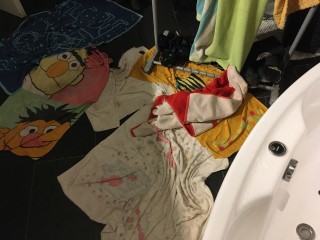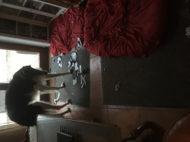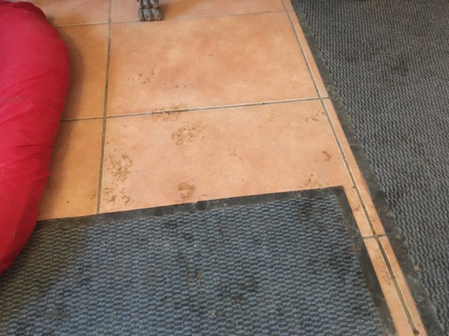 Und latsch, latsch ist alles schön dreckig. Also putzen, putzen, putzen! Und Hundebetten waschen, waschen, waschen! Ich hasse es!