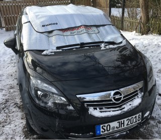 10.02.2021: Gestern schien teilweise die Sonne, ich schippte unser Auto und Achim die Auffahrt frei. Leider schneit es heute wieder, d. h.: Auffahrt und Auto werden - langsam, aber sicher - wieder zugeschneit. Das Termometer zeigt -17° ! Achim fährt mit dem Rad nach Soest! Brrr!