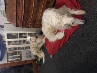 Somit haben wir 4 Rüden mit FCI-CACIL-Lizenz und auch 2 Hündinnen! Knjaginia hat die Renn-und coursing-Lizenz! Ach, wir alle freuen uns schon sehr auf das "Neue Jahr 2022"!! Opal`s und Amethyst`s Kinder wollen zeigen, was sie können, damit die Papas stolz auf sie sein können. Wobei, Amethyst`s Mädchen hat das ja schon getan! Der Weihnachtsmann klingelt und bringt ein Paket: