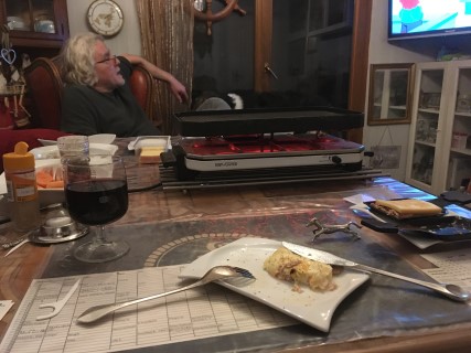 Raus geht`s, und wieder rein! Der Abend konnte gar nicht lang genug sein, so viel Spaß hatten die Lieben. Wir hatten auch Spaß, denn wir raclettisierten, mh, lecker!