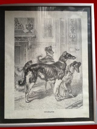 Brilliant, sein Vater Amethyst und Amethyst`s "Erzieher" Opal. Amethyst`s Pedigree basiert beidseitig auf den Wordwinner-und Eurpasiegerlinien von Rakenlov Beliy Baritnik und Japejukan Kulkuri. Diese finnländischen Linien begründen sich auf den alten Margitan-Linien, die in vielen nordischen Toplinien zu finden und heute sehr gesucht sind. Amethyst in Donaueschingen mit nassen Beinen und in Grab beim coursing. Und dann in Kirchheim "schweben" wir zwei beim "Sighthound of the Year"