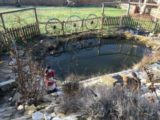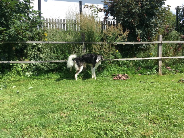 08.02.2021: Es reicht! Mit 10 Ausrufezeichen! Das "Kleine Volk" hinterläßt nur Desaster und Zerstörung! Knjas rauschte quer durch den Gartenteich! Opal ist entsetzt, zu recht! Ich hoffe, die Kois sind nicht aufgeweckt worden! Mist-Strampelsack, dieser Knjas! Doch Beryll ist keinen Deut besser, er verkrümelte sich auf der Empore! das Büro ist tabu für alle, auch für hauseigene Barsois!!!!