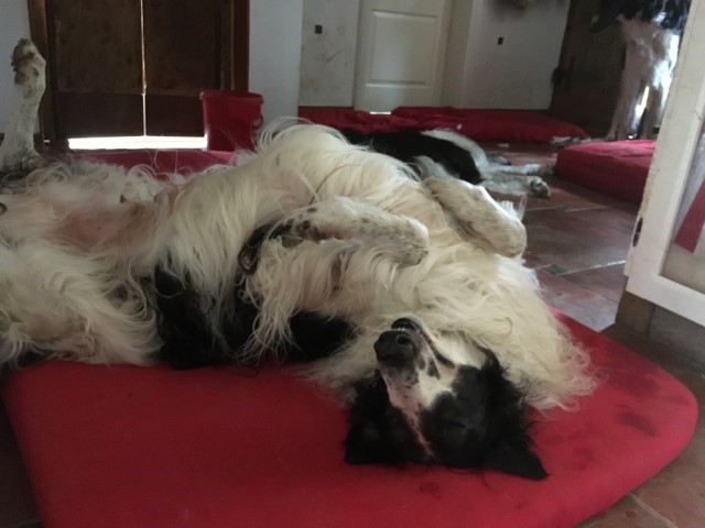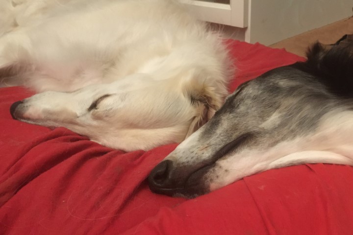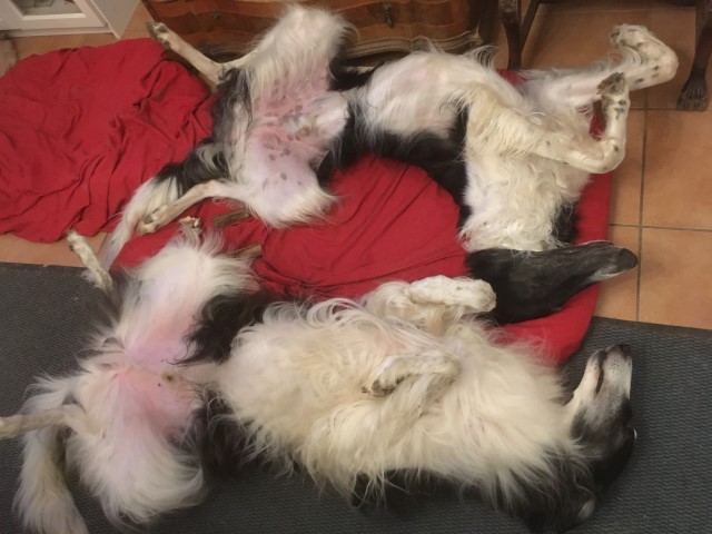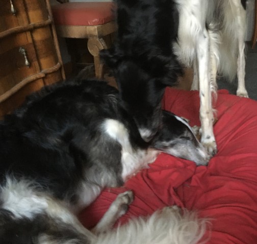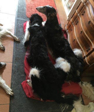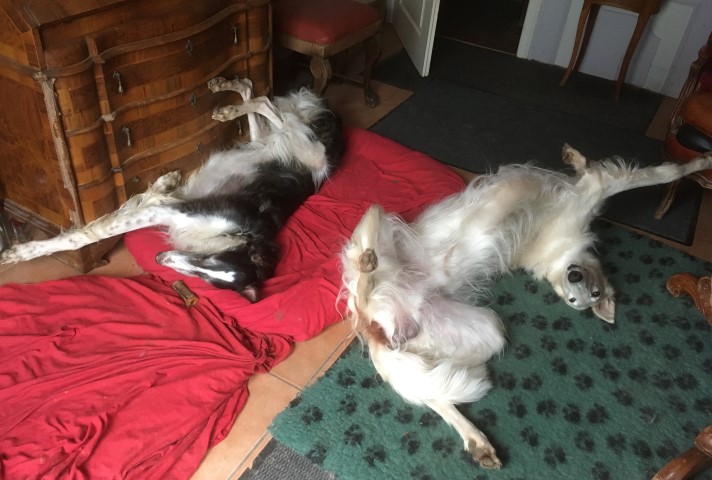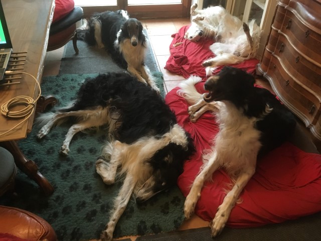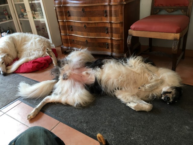 Mittenmang liegen die Barsois und pennen in aller Seelenruhe! Nerven wie Drahtseile!