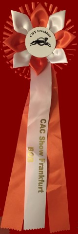 Opal bekam ein V2 mit dem Hinweis, er sei zu dick! War mir klar, wird morgen auch nicht anders sein, war in Köln schon so. Etwas später war Beryll dran. Für ihn war es sein Debut, und das gleich mit einer Hallenausstellung. Schlimmer geht es eigentlich nicht. Wir waren zu viert. Beri lief mit engem Körperkontakt zu mir, jedoch locker an der Leine, und er lief richtig gut! Damit war ich sehr zufrieden. Seine Mitstreiter waren alle schön aufgehaart, ein Weltsieger war mit im Ring, und dazu kam unser "Nackthund". Beryll bekam ein V3! Ein V3 mit dem Kommentar: Ein sehr schöner Hund, korrekter Körperbau, er dürfe nur noch ein bißchen mehr "Wums" zeigen! Oh, ich im Glück!!! Und ich dachte dann so bei mir: Gott sei Dank, daß er hier nicht mehr "Wums" gezeigt hat, mir reicht sein "Wums" beim coursing und auch von zu Hause! Ganz dolle Danke an Herrn Richter W. Richter und auch an Achim, ohne dessen Hilfe ich die beiden "Jammerlappen" hätte nicht ausstellen können. Ja, ich möchte nicht vergessen zu sagen, daß ich mich sehr gefreut habe, einige meiner lieben Ausstellungsfreunde wieder zu treffen. Und so freue ich mich auch auf Morgen, Sonntag. Opal wird zwar immer noch zu dick sein und Beryll nicht dabei, weil ich versehentlich statt 4. und 5. 2 mal den 4. gemeldet hatte. Als es mir auffiel, war schon Meldeschluß. Doch das ist jetzt top in Ordnung! Montag kann ich seine Trainingskarte und den Richterbericht zur Sportkommission schicken. Coursings - wir kommen!