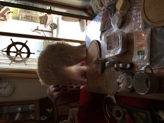 Bis die Barsois noch ein letztes mal raus mußten, hatte ich es mir gestern abend noch richtig gemüdlich gemacht in der Küche mit Kerze auf den Tisch, Teelichter in Gläschen und einem heißen Kakao, Achim schlief schon. Dann, nach 24:00 Uhr die Barsois raus, wieder rein, schlafen gehen.