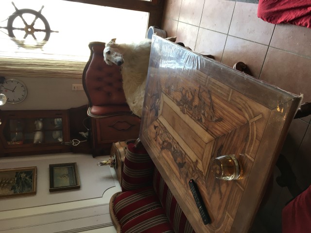 25.12.2021: Weihnachtstag1, die Sonne scheint, es ist recht stürmisch, Amethyst`s lange Haare wehen im Wind, das sieht sehr schön aus, "das kleine Weiße", unser "Tuffie", meine Haare wehen mir ins Gesicht. Der Rest von uns hält Mittagsschlaf. Achim mußte unbedingt noch die Fliesen verfugen, Bald ist die Lufthansa-Küche ganz fertig. Was noch fehlt, sind die Regale für Gewürze, Kaffeemaschine und Wasserkocher.