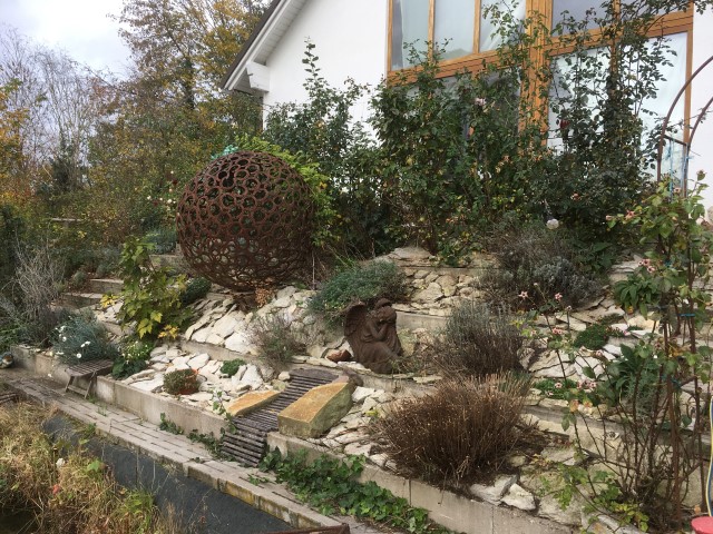 Dumm, ich hatte die Kerze zwar aus gemacht, jedoch nicht vom Tisch geräumt ....... ! Mehr muß ich - denke ich mal - nicht mehr sagen! Im Wohnzimmer knistert der Kamin und verströmt angenehme Wärme im ganzen Haus. Draußen regnet es, wir habe inzwischen alle Gartenmöbel und Deko eingeräumt, jetzt sieht alles trist aus, passend zum Wetter!