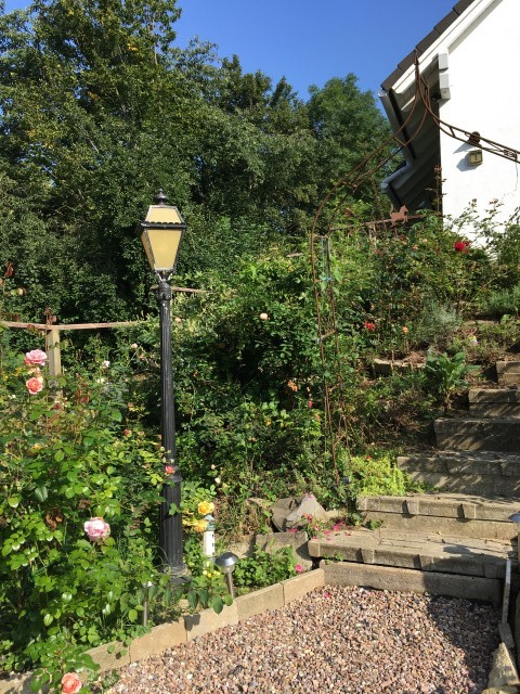 13.12.2021: Achim hat heute die Weihnachtsgirlande über unserer Haustür an das Stromnetz angeschlossen. Erstmalig nach 8 Jahren leuchtet sie für uns! Sie ist ein Geschenk einer unserer Nachbarn aus Dinklage. Dort konnten wir sie nicht aufhängen, doch jetzt in Soest erstrahlt sie in der Dunkelheit. Ich freue mich sehr darüber!