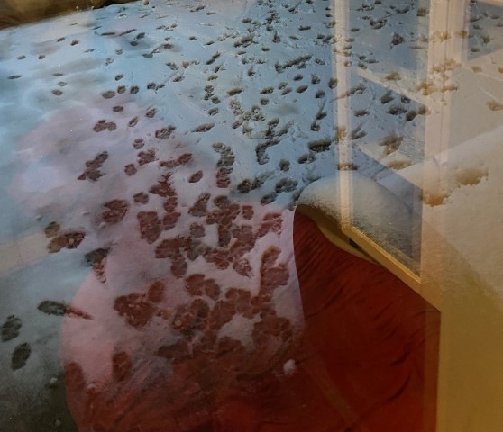 sieht deutlich, wer zuletzt drauf gesessen hat. Und die Tür nach draußen,